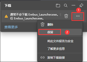 **下载Erebus 如果下载出现危险提示, 信任并保留即可**